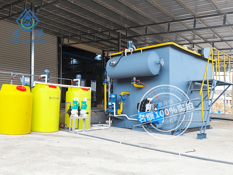 设备工艺:生产废水→PAC投加→PAM投加→溶汽气浮处理——消泡剂——中间水池——石英砂——活性炭——排放