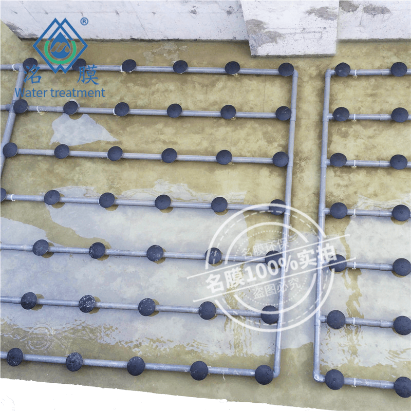 1、在曝气生物滤池内先安装滤板、曝气生物滤池专用滤头,然后安装单孔膜曝气器,再倒入鹅卵石垫层(高度约200m),倒入挂膜生物陶粒滤料。避免鹅卵石垫层砸破曝气器,并且还要避免电焊火苗及重物锐器掉入池中损坏管路及曝气器。